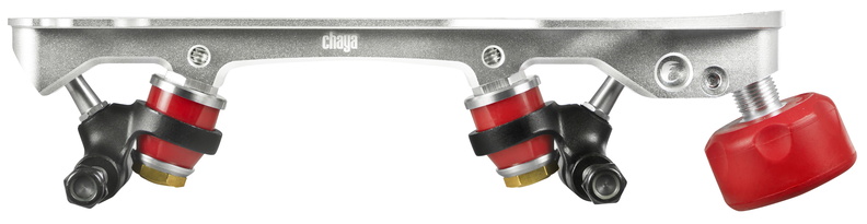 Les platines standard Chaya Ophira ont une mission simple : augmenter vos performances à un nouveau niveau. La caractéristique la plus remarquable est sans doute le système Dual Center Mount (DCM). Ce système de montage à 2 points vous permet de monter votre platine Chaya sur votre botte Chaya sans utiliser d’outils électriques ! Vous pouvez monter vos platines vous-même en suivant un processus très simple que tout le monde peut faire. Montez vos platines en quelques minutes sur vos bottes Chaya en fixant simplement deux vis avec l’outil à main fourni. DCM vous permet de déplacer votre platine vers l’avant et vers l’arrière, et d’un côté à l’autre pour compléter votre style de patinage préféré. Cependant, les platines Ophira sont également compatibles avec toute autre botte derby. La butée Chaya Cherry Bomb est positionnée à un décalage. Cette position anatomiquement orientée vous permet d’arrêter plus vite, d’accélérer avec plus de puissance! Ceci avec notre Power Toe System (PTS) qui suit la forme naturelle de la botte offre un transfert de puissance supérieur que la botte et la platine sont plus étroitement liés. Les trucks en fonte d’aluminium verrouillés par des coussins super forte densité en Delrin, ne vous laissera pas tomber. Cette platine légère de 20° en aluminium 6061 pour avion est équipée de coussins en polyuréthane Jelly Interlock haut de gamme (PU-) qui offrent un excellent contrôle et maniabilité. Restez en avance sur la concurrence avec les plaques Chaya Ophira.