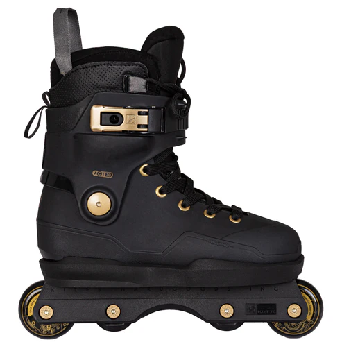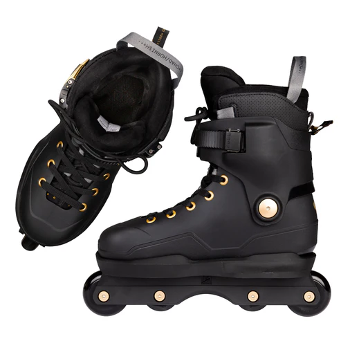 « Je suis plus qu’excité de présenter – Mon premier skate professionnel. Un rêve de 25 ans, enfin une réalité. Noir avec des accents dorés ? Pour assortir la chemise noire et la chaîne dorée que je porte tous les jours ? Oui s’il vous plaît. Construit sur la nouvelle botte IQON ACT AG (un classique instantané et la botte rigide la plus innovante jamais conçue) et équipé de certains cadres légendaires anti-balanciers KIZER Fluids, ainsi que d’une version révisée de mes roues pro 60mm 90A en noir et or assortis. Chaque détail est fidèle à mon style et à ma façon de patiner. J’ai toujours aimé les patins hardboots fabriqués en plastique composite. Pour mes bottes pro, j’ai choisi un matériau un peu plus doux que celui utilisé sur l’ACT d’origine pour une flexibilité accrue, et j’ai également choisi une doublure un peu plus large pour donner plus d’espace et de confort à mes pieds. Patinage anti-rocker, et j’ai toujours porté une chaîne en or, cela a toujours été mon installation de rêve, et enfin c’est un rêve devenu réalité. J’espère que tu déchires avec la même fierté que moi. Merci pour ton soutien, cela signifie tout pour moi.