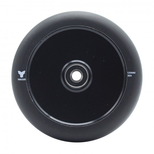 Découvrez les roues Trigger Hollow noir de 120 mm x 24 mm / 88A, conçues pour les trottinettes freestyle en street, skatepark et rampe, offrant une glisse fluide et dynamique.